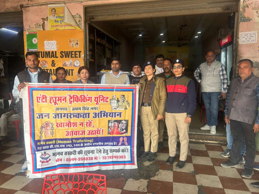 रुद्रपुर। वरिष्ठ पुलिस अधीक्षक, ऊधम सिंह नगर, मणिकांत मिश्रा के सख्त दिशा-निर्देशों के अनुपालन में, एंटी ह्यूमन ट्रैफिकिंग यूनिट (ए.एच.टी.यू.) ने बाल श्रम के विरुद्ध एक व्यापक जागरूकता एवं छापामारी अभियान चलाया।प्रभारी निरीक्षक (ए.एच.टी.यू.) के पर्यवेक्षण में, ए.एच.टी.यू. की एक संयुक्त टीम ने श्रम प्रवर्तन विभाग और चाइल्ड हेल्पलाइन के साथ मिलकर आज थाना किच्छा के लालपुर बाज़ार में औचक निरीक्षण और सत्यापन की कार्यवाही की।बाल श्रमिक का रेस्क्यू और कानूनी कार्रवाईछापेमारी के दौरान, लालपुर बाज़ार स्थित “गट्टूलाल स्वेट्स एंड रेस्टोरेंट” में एक नाबालिग बच्चा काम करता हुआ पाया गया। पूछताछ में बालक ने अपना नाम पुनीत कुमार पुत्र पवन कुमार निवासी मल्शा गिरधरपुर बताया। तत्काल कार्रवाई: मौके पर मौजूद श्रम प्रवर्तन अधिकारी, विपिन कुमार, द्वारा रेस्टोरेंट मालिक के विरुद्ध तत्काल कानूनी कार्यवाही करते हुए अपराध पंजीकृत करवाया गया।