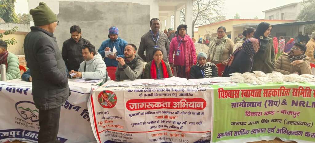 बाजपुर। जिला विधिक सेवा प्राधिकरण ऊधम सिंह नगर के तत्वाधान में जागरूक करने के लिए जागरूकता शिविर का आयोजन किया गया । जिला विधिक सेवा प्राधिकरण उधम सिंह नगर सचिव व सिविल जज योगेंद्र कुमार सागर के निर्देश पर इस शिविर का आयोजन किया गया जहाँ जन जन की सरकार जन जन के द्वार शिविर कार्यक्रम में अपना स्टॉल लगा और कैंप का आयोजन किया जिसमें उपस्थित जनता को जागरूक किया गया और नालसा योजना 2025 भारत मे नशीली दवाओं के दुरूपयोग से प्रभावित व्यक्तियों को विधिक सहायता प्रदान करती है, इस योजना के तहत नशे के पीड़ितों को पहचानना, उनका उपचार करना और पुनर्वास में सहायता देना शामिल है यह योजना ड्रग्स से जुड़े खतरों के बारे में जागरूकता फैलाना, नशा मुक्ति केंन्द्रों को बढ़ावा देना और पंचायती राज संस्थाओं तथा स्थानीय निकायों को जमीनी स्तर पर ड्रग्स के दुरूपयोग की रोकथाम के लिए सशक्त बनाना भी चाहती जिसको लेकर जनता को जानकारी देते हुए जागरूक किया गया।