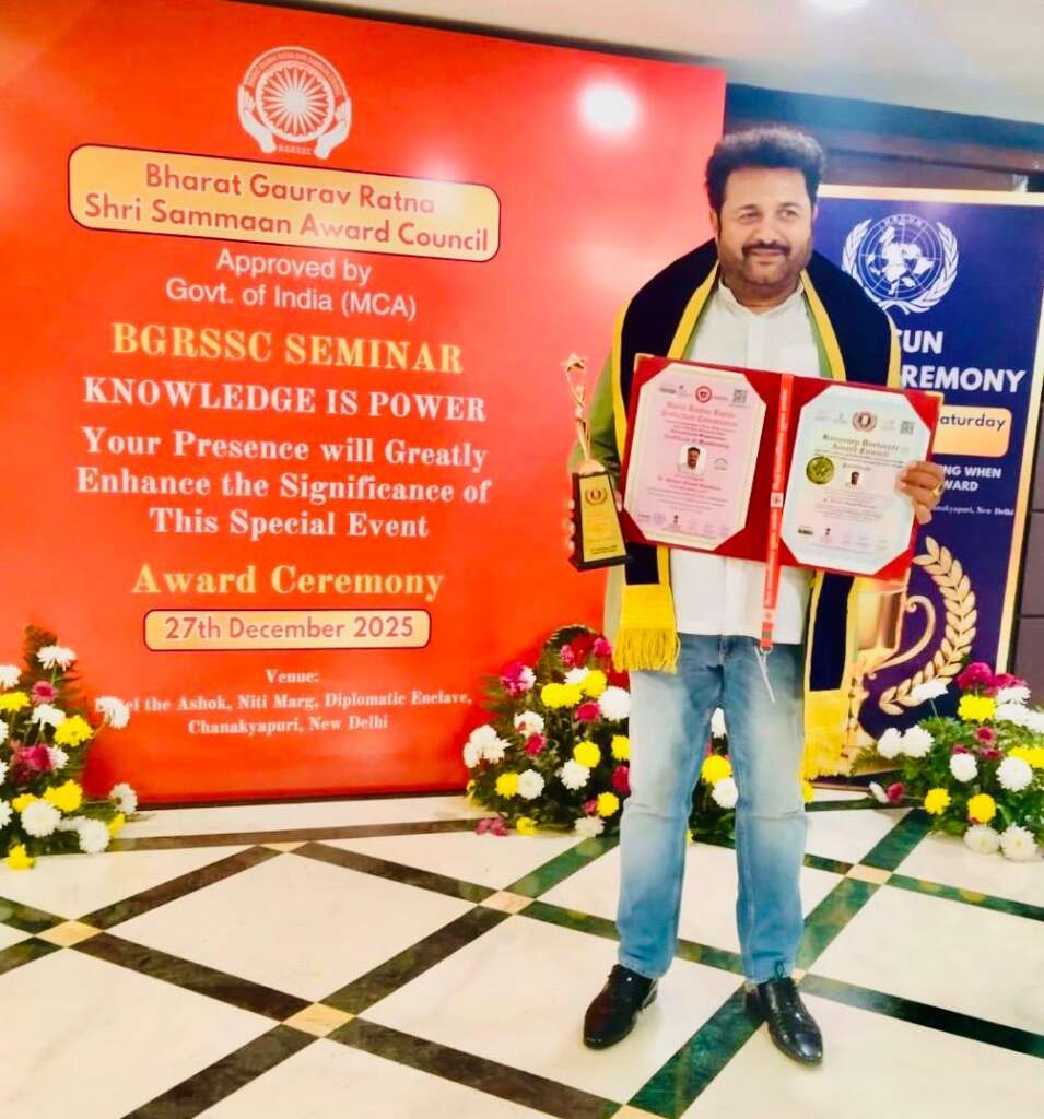– आयुष और मानव सेवा में उत्कृष्ट योगदान के लिए मिला राष्ट्रीय सम्मान- प्रतिष्ठित संस्था वर्ल्ड ह्यूमन राइट्स प्रोटेक्शन कमीशन की राष्ट्रीय स्तर पर सदस्यता भी मिली