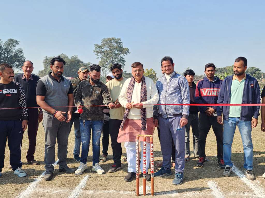 पूर्व विधायक राजेश शुक्ला ने क्रिकेट टूर्नामेंट का फीता काटकर किया शुभारम्भ।