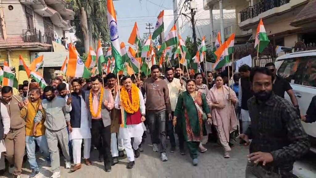 सरदार बल्लभ भाई पटेल की 150 वीं जयंती पर किच्छा के पूर्व विधायक शुक्ला के नेतृत्व मे निकली यूनिटी मार्च एकता पदयात्रा।