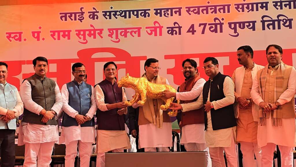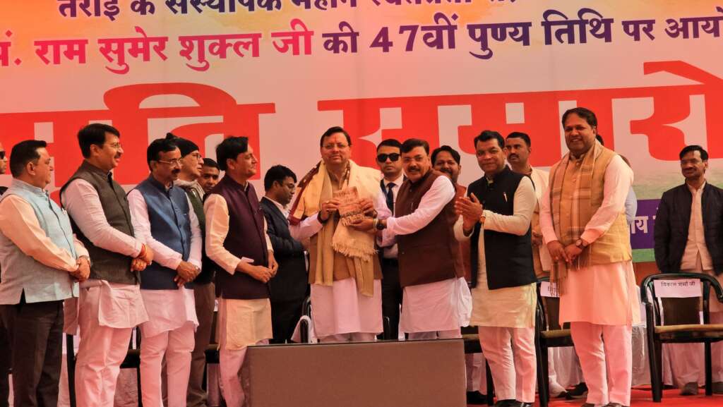 उन्होंने कहा कि आज के इस अवसर पर मैं, आप सभी को ये विश्वास दिलाना चाहता हूँ कि हमारी सरकार तराई क्षेत्र के समग्र विकास और यहां के लोगों की समृद्धि के लिए अपने “विकल्प रहित संकल्प” के साथ निरंतर कार्य करती रहेगी और हम सभी मिलकर पंडित जी के तराई को एक आधुनिक और विकसित क्षेत्र बनाने के स्वप्न को अवश्य साकार करेंगे।कार्यक्रम संयोजक पूर्व विधायक राजेश शुक्ला ने सभी अतिथियों का स्वागत व अभिनंदन करते हुए कहा कि भारतरत्न पंडित गोविंद बल्लभ पंत जी के नेतृत्व में प0 रामसुमेर शुक्ल जी ने तराई को बसाने का कार्य किया। उन्होंने तराई का सर्वांगीण विकास व एम्स,मेडिकल कॉलेज, अंतर्राष्ट्रीय एयरपोर्ट, किच्छा के खुर्पिया फार्म में इंडस्ट्रियल स्मार्ट पार्क, बनाकर हमारे बुजुर्गों, शहीदों का सपना साकार करने के लिए माननीय मुख्यमंत्री श्री धामी का आभार व्यक्त किया। उन्होंने कहा धामी है तो हामी है। उन्होंने कहा धामी सरकार ने प्रदेश में यूसीसी, कठोर नकल विरोधी कानून जैसे कई निर्णय लेकर देश के लिए एक नजीर कायम की है। कार्यक्रम में विभिन्न संगठनों ने माननीय मुख्यमंत्री जी का फूल मलाओं से जोरदार स्वागत किया व प्रतीक चिन्ह भेंट किए।इसके उपरांत माननीय मुख्यमंत्री पूर्व विधायक राजेश शुक्ला के आवास पहुँचे जहाँ उन्होंने राजेश शुक्ला की माता जी से भेंट कर उनका आशीर्वाद लिया और भोजन ग्रहण किया।इस अवसर पर विधायक शिव अरोरा, मेयर विकास शर्मा, दीपक बाली, दर्जामंत्री अनिल कपूर डब्बू, फरजाना बेगम, खातिब मलिक, मंजीत सिंह, उत्तम दत्ता, मुकेश कुमार, अध्यक्ष नगर पालिका गदरपुर मिंटू गुम्बर, नगला सचिन शुक्ला, नगर पंचायत दिनेशपुर, मंजीत कौर, अध्यक्ष पंडित राम सुमेर शुक्ल मेमोरियल फाउंडेशन ट्रस्ट दिनेश शुक्ला, जिलाधिकारी नितिन सिंह भदौरिया, एसएसपी मणिकांत मिश्रा, मुख्य विकास अधिकारी दिवेश शाशनी, अपर जिलाधिकारी कौस्तुभ मिश्र, एसपी क्राइम निहारिका तोमर, अपर पुलिस अधीक्षक डॉ उत्तम सिंह नेगी, प्राचार्य मेडिकल कॉलेज डॉ जीएस तितियाल, सीएमओ डॉ के के अग्रवाल आदि मौजूद थे।