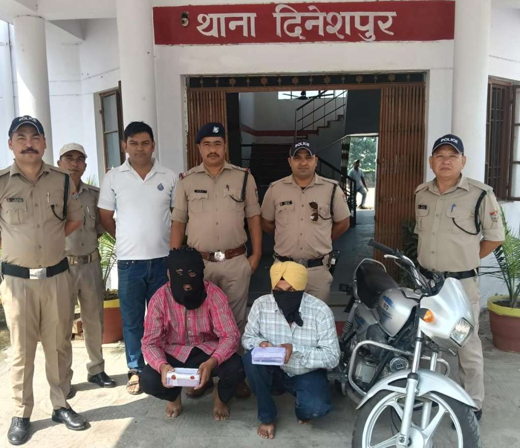 *वाहन चेकिंग के दौरान पकड़े गए तस्कर*➡️ दिनांक 04 अक्टूबर 2025 को थाना दिनेशपुर पुलिस टीम द्वारा ग्राम चरणपुर रोड दिनेशपुर में अवैध शराब व मादक पदार्थों की रोकथाम हेतु वाहन चेकिंग अभियान चलाया जा रहा था। चेकिंग के दौरान स्प्लेंडर मोटरसाइकिल (संख्या – UK06 AU 2602) पर सवार दो संदिग्ध युवकों को रुकने का इशारा किया गया। जांच के दौरान दोनों व्यक्तियों के कब्जे से 256 ग्राम अवैध स्मैक बरामद की गई, जिसकी अंतरराष्ट्रीय बाजार में अनुमानित कीमत ₹75 लाख से अधिक आंकी गई है।