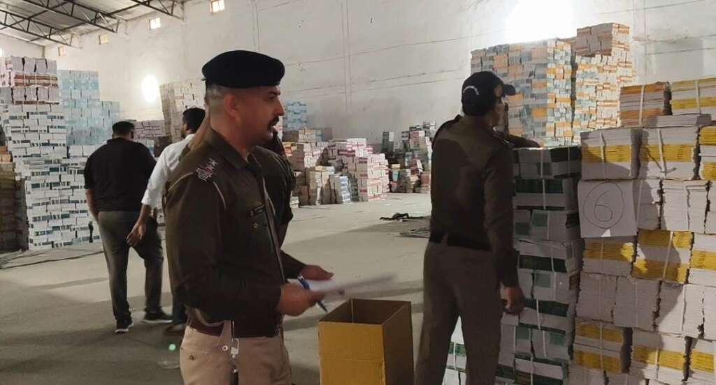 पुलिस ने 09 से 10 करोड़ रुपये की नौ लाख चौहत्तर हजार पिच्चासी एनसीईआरटी की फर्जी किताबों का विशाल जखीरा किया बरामद।