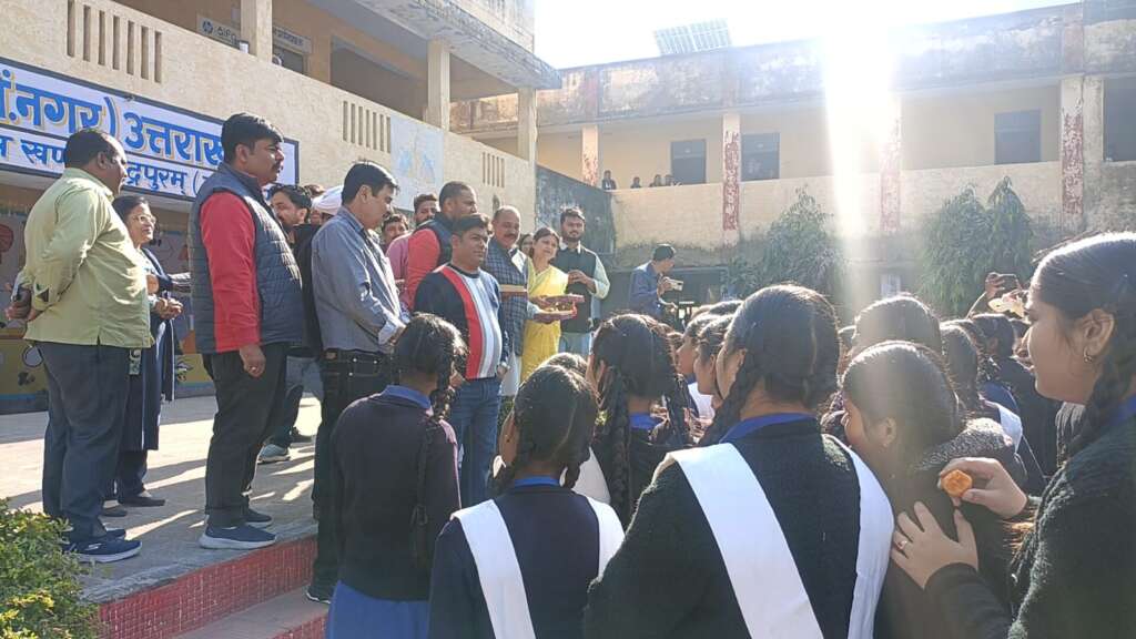 अटल उत्कर्ष राजकीय बालिका इंटर कॉलेज, किच्छा में नए भवन की स्वीकृति जारी होने पर विद्यालय मे किया मिस्ठान वितरण।