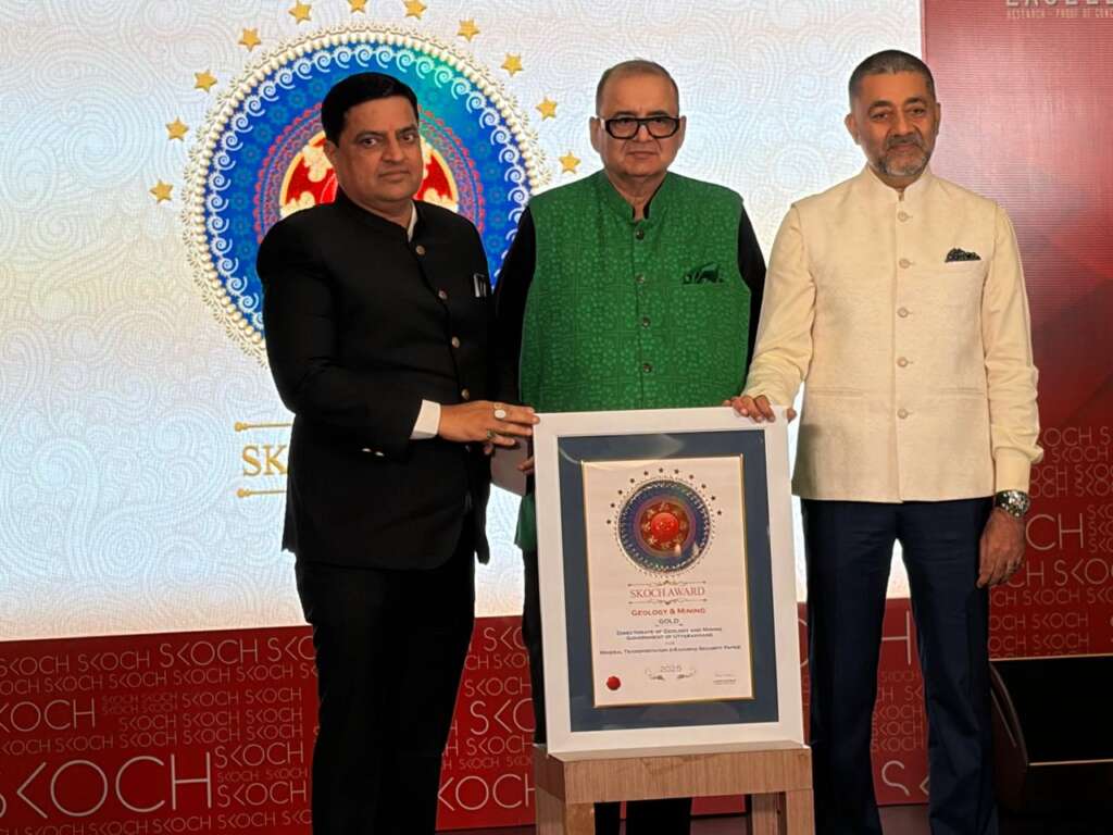देहरादून / ऊधम सिंह नगर। खनन विभाग, उत्तराखण्ड ” के दो महत्वपर्ण प्रोजेक्टस MDTSS (माइनिंग डिजिटल ट्रांसफॉर्मेशन एंड सर्विलांस सिस्टम) “व ई-रन्ना सिक्योरिटी पेपर ‘ को राष्ट्रीय स्तरपर प्रतिष्ठित SKOCH Award – India’s Honest Indenendent Honour (GOLD) स सम्मानित किया गया।