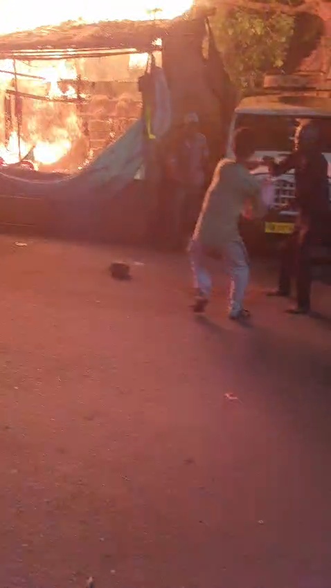 रॉकेट की चिंगारी से टनकपुर पुरानी टंकी क्षेत्र की दो कच्ची दुकानों को जला कर किया खाक।
